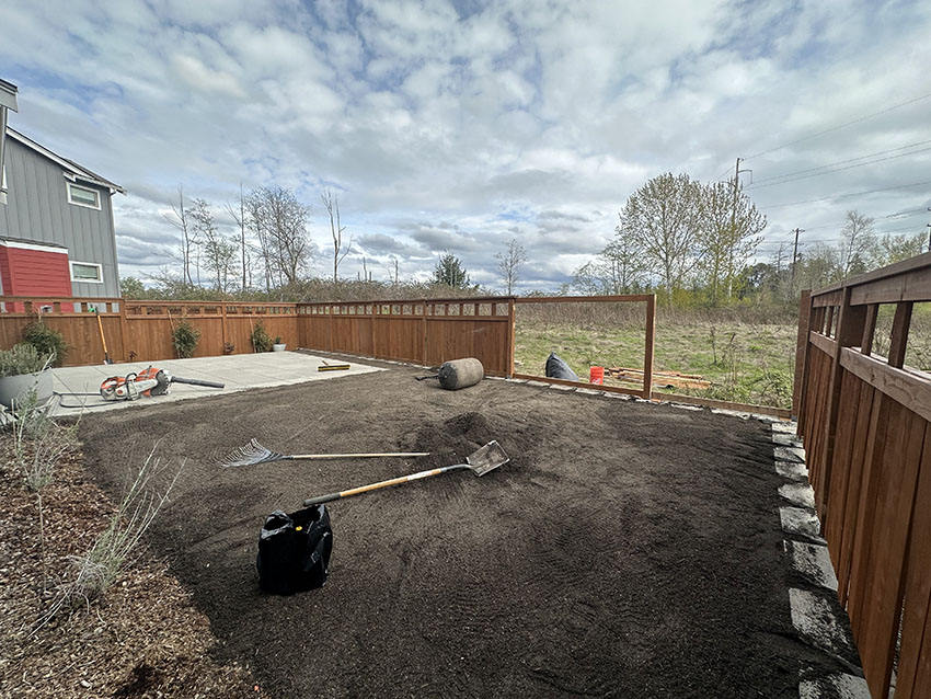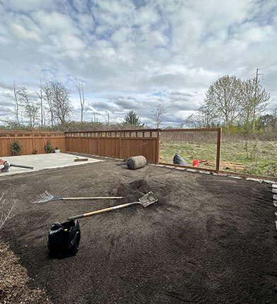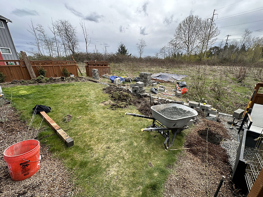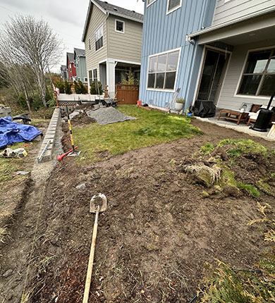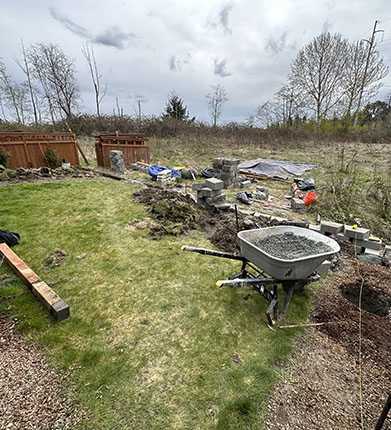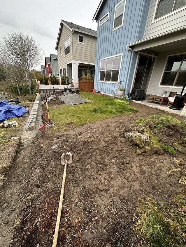Retaining wall, new lawn installation, new paver patio, and fence installation.