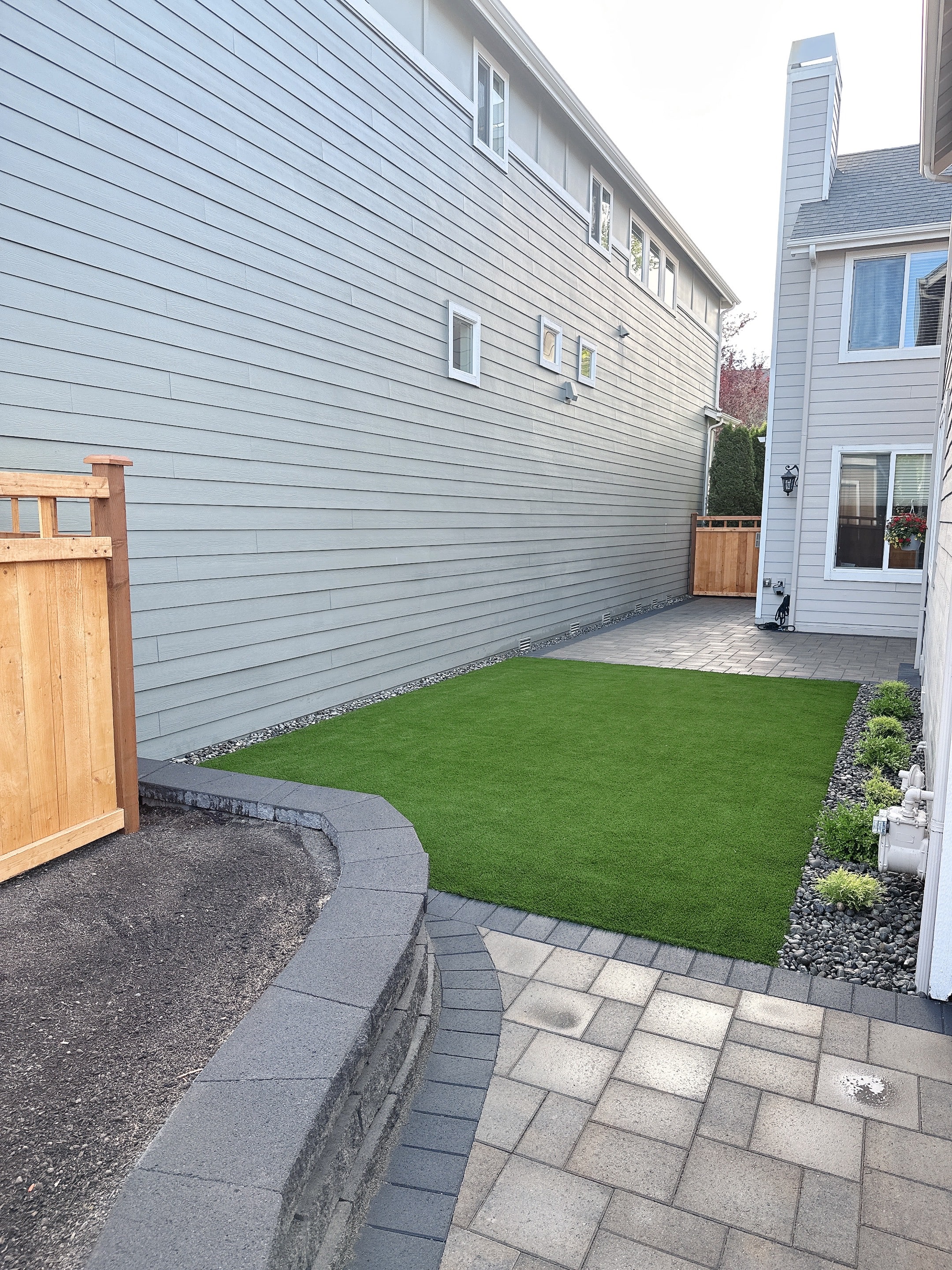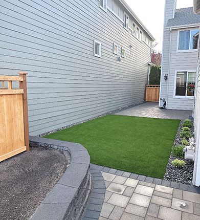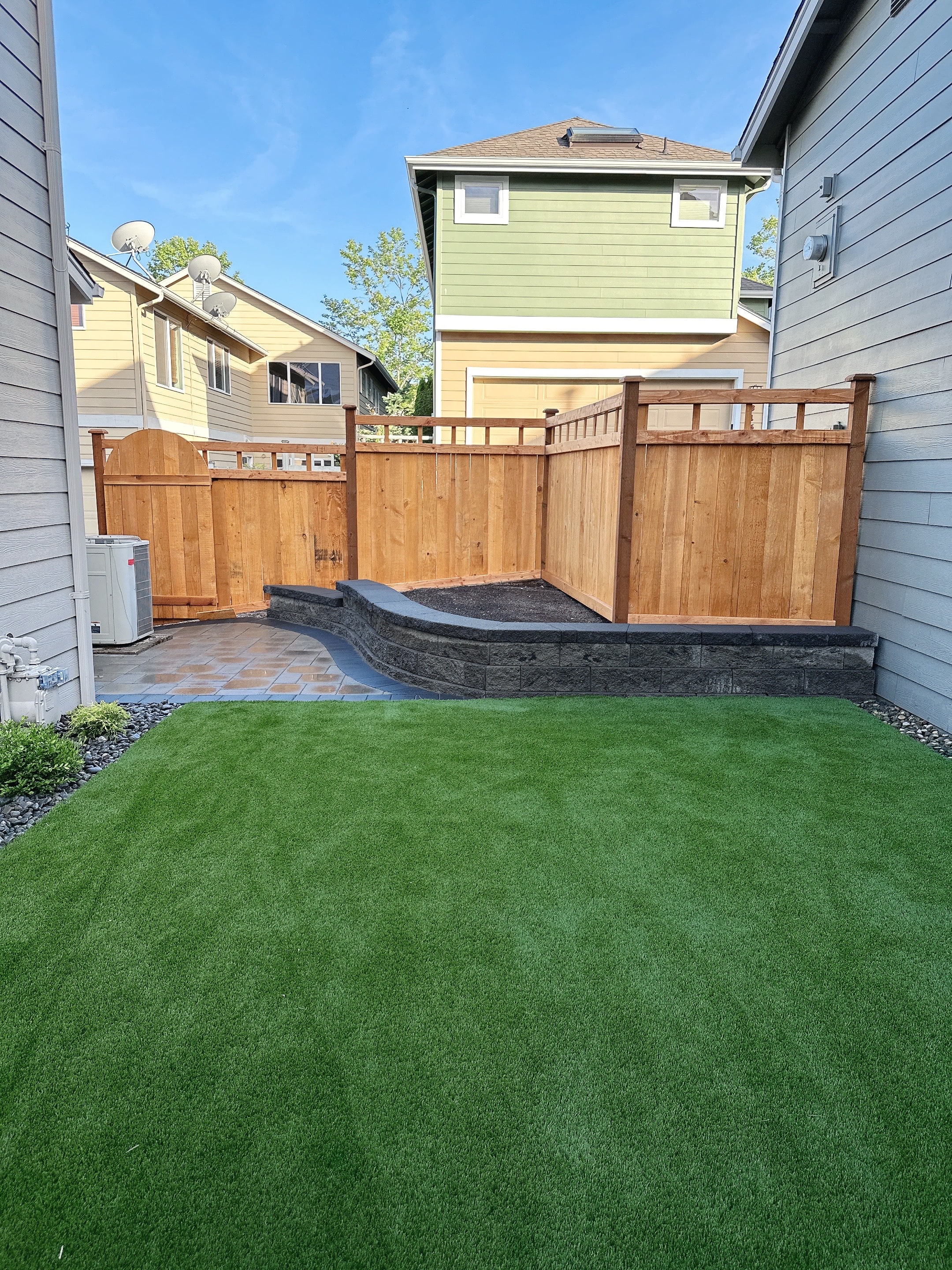 Landscape Design, Demolition, Patio, Wood Fence, Raised Bed & Syntetic Grass
