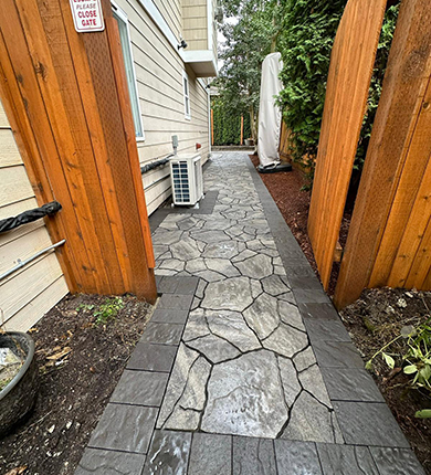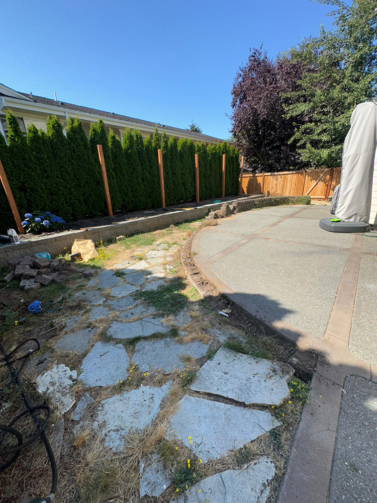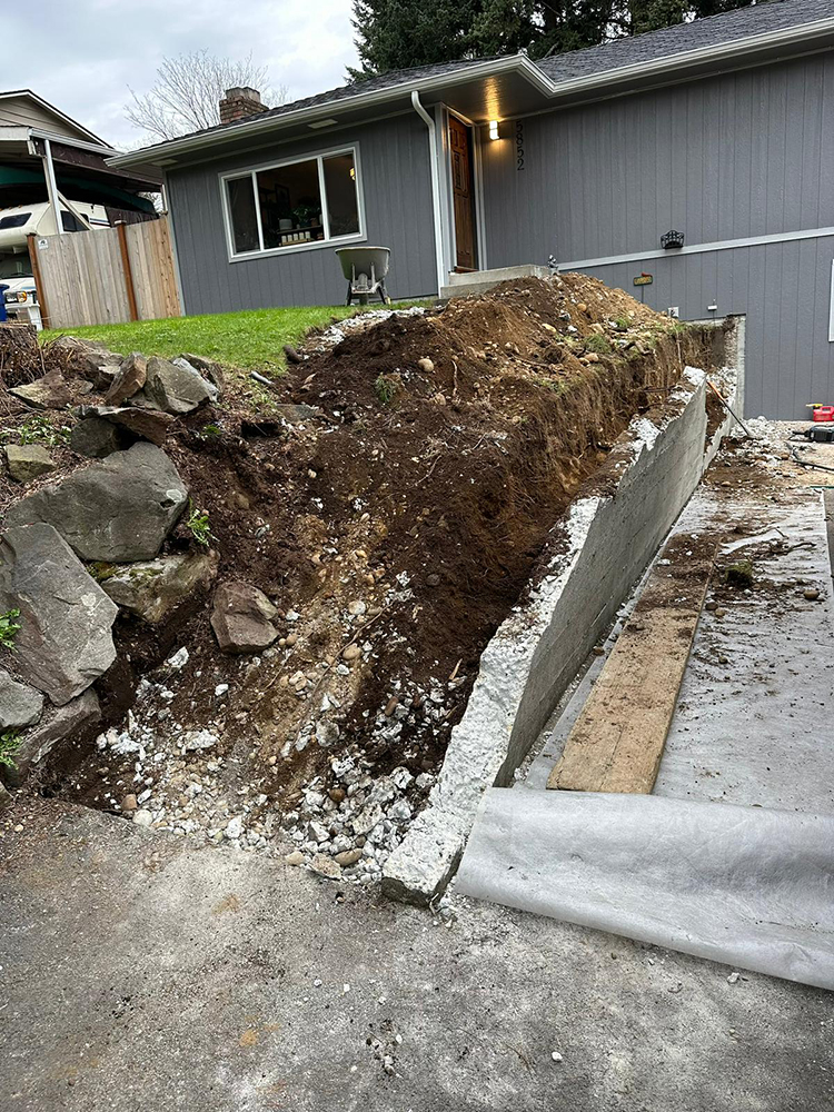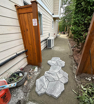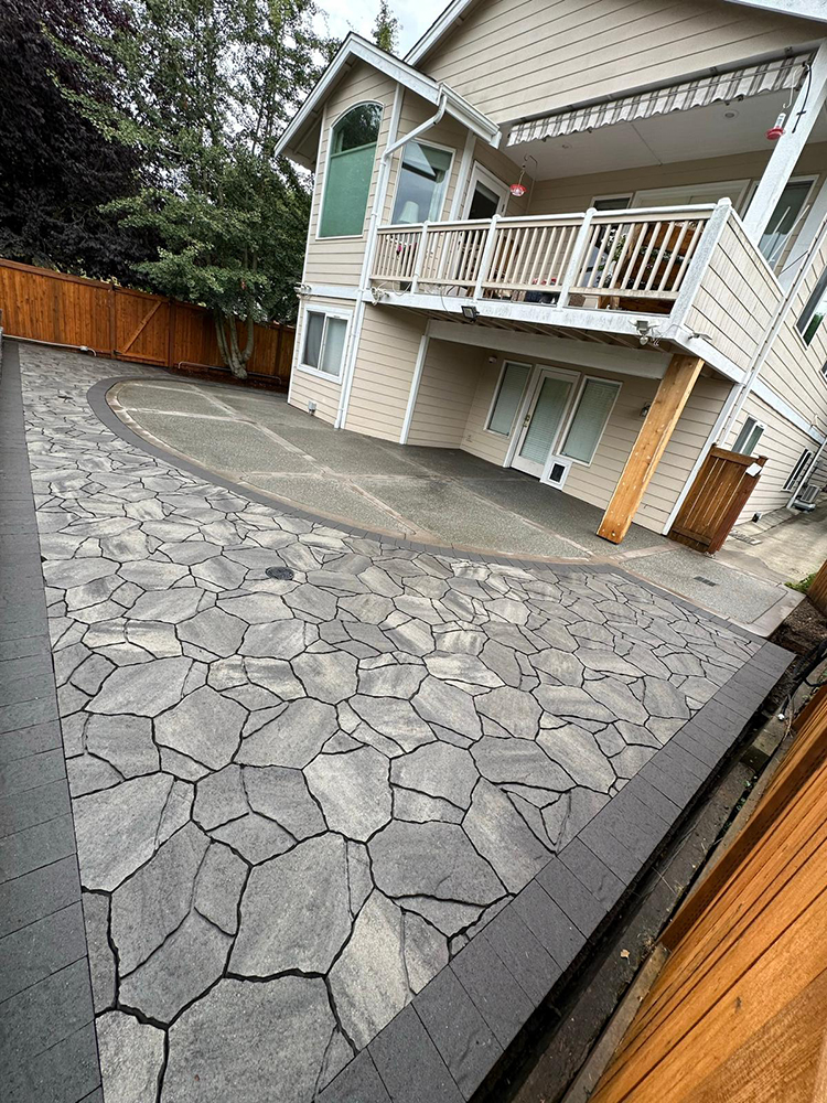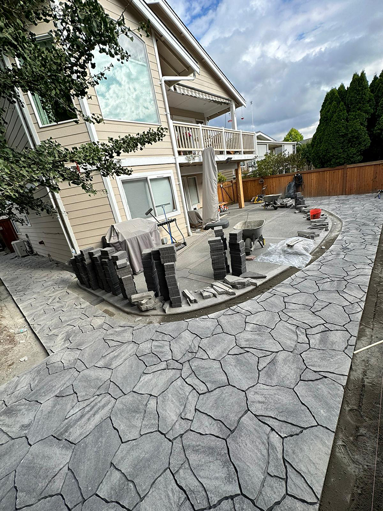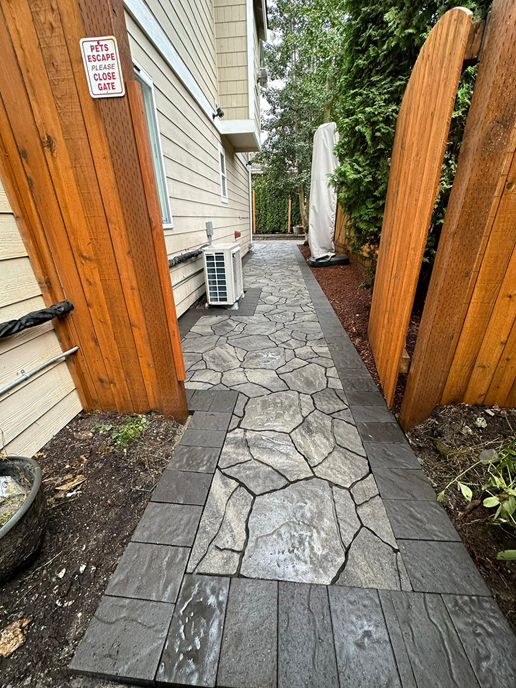 Expert construction and design services in Edmonds, WA. This project features a block retaining wall with integrated steps, and a beautifully crafted paver patio and walkway.