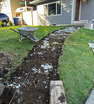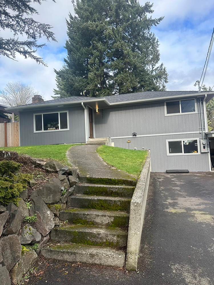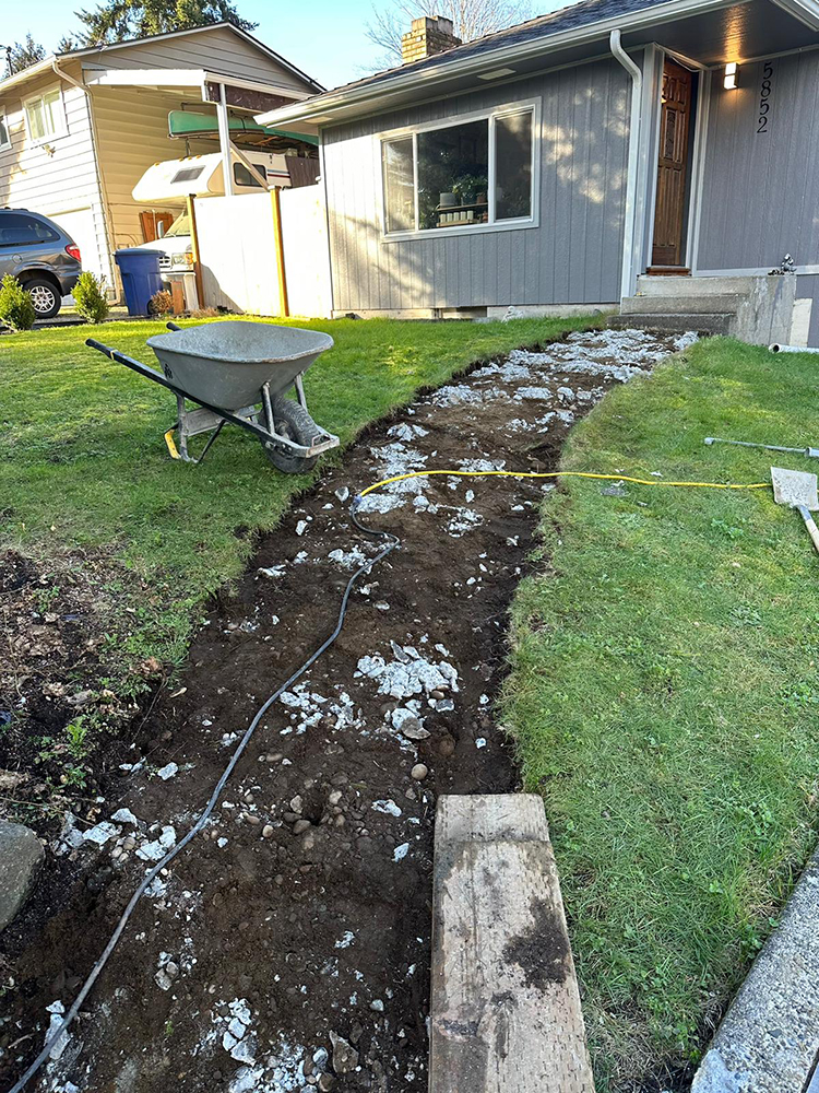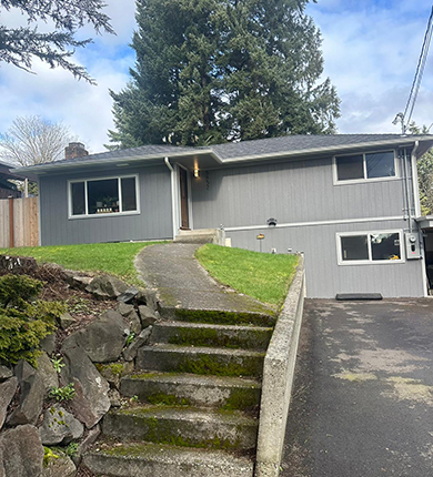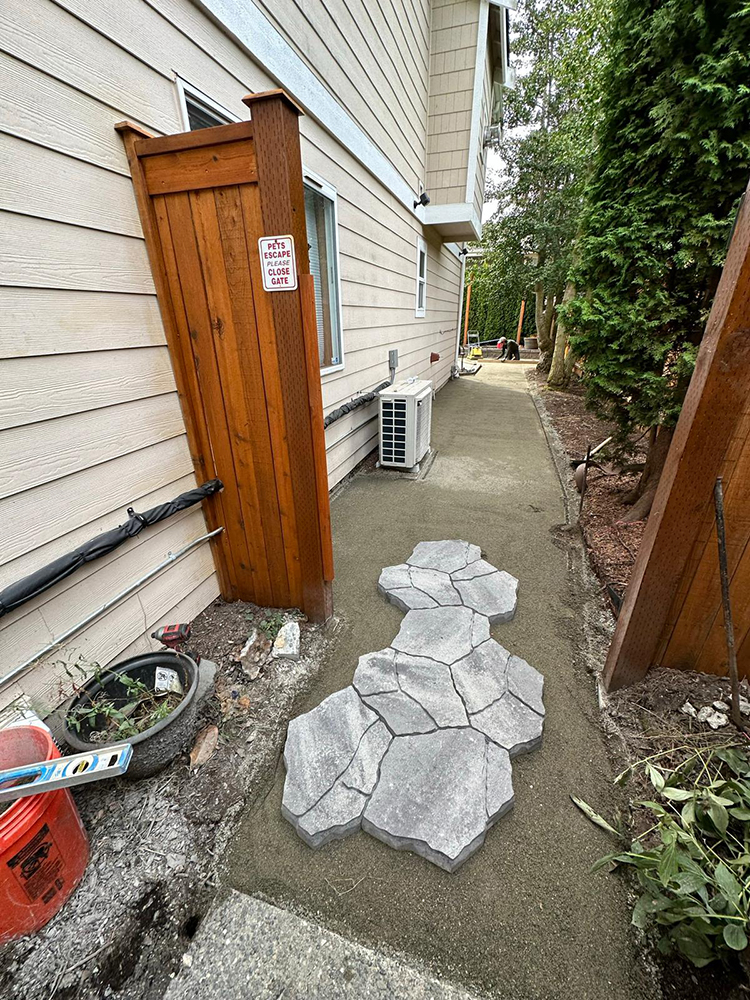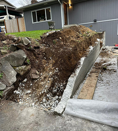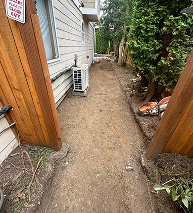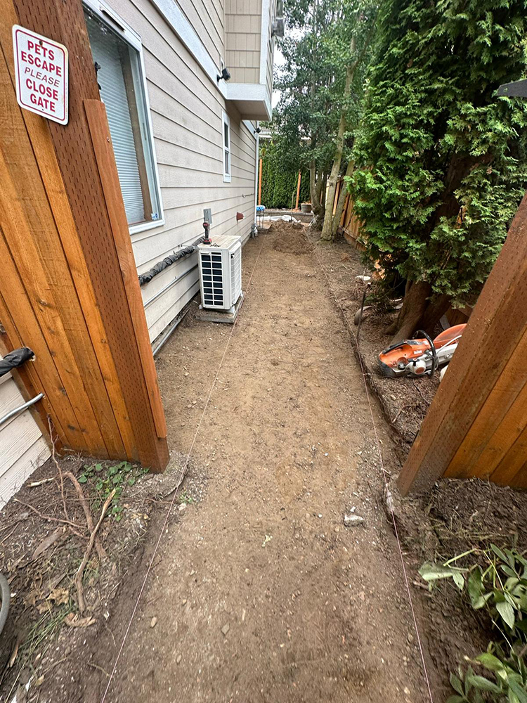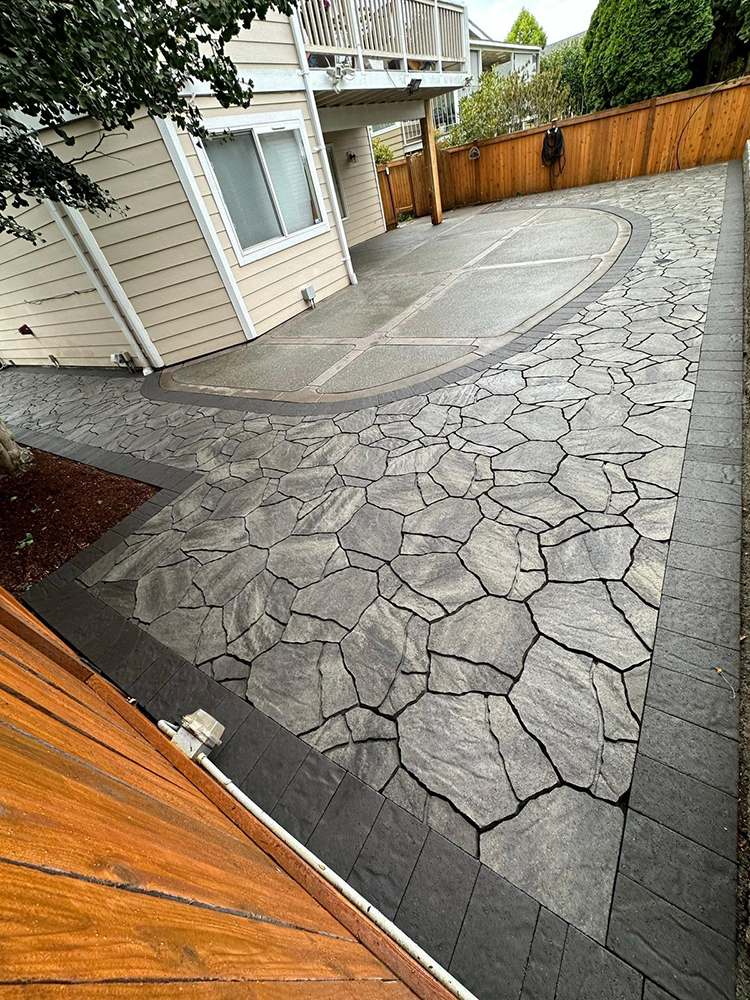 Expert construction and design services in Edmonds, WA. This project features a block retaining wall with integrated steps, and a beautifully crafted paver patio and walkway.