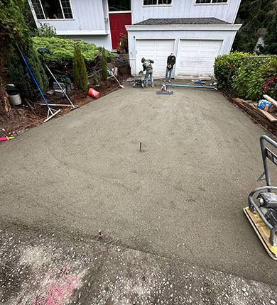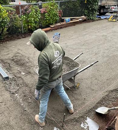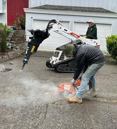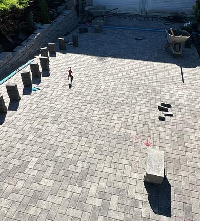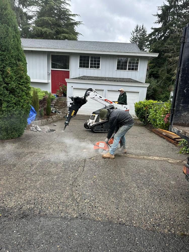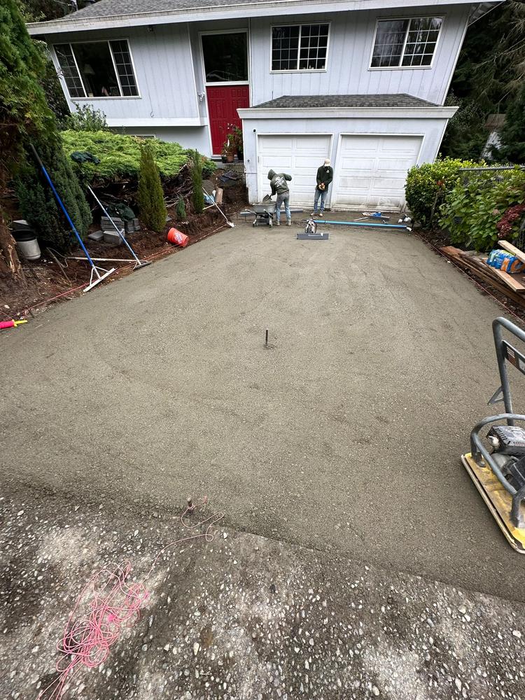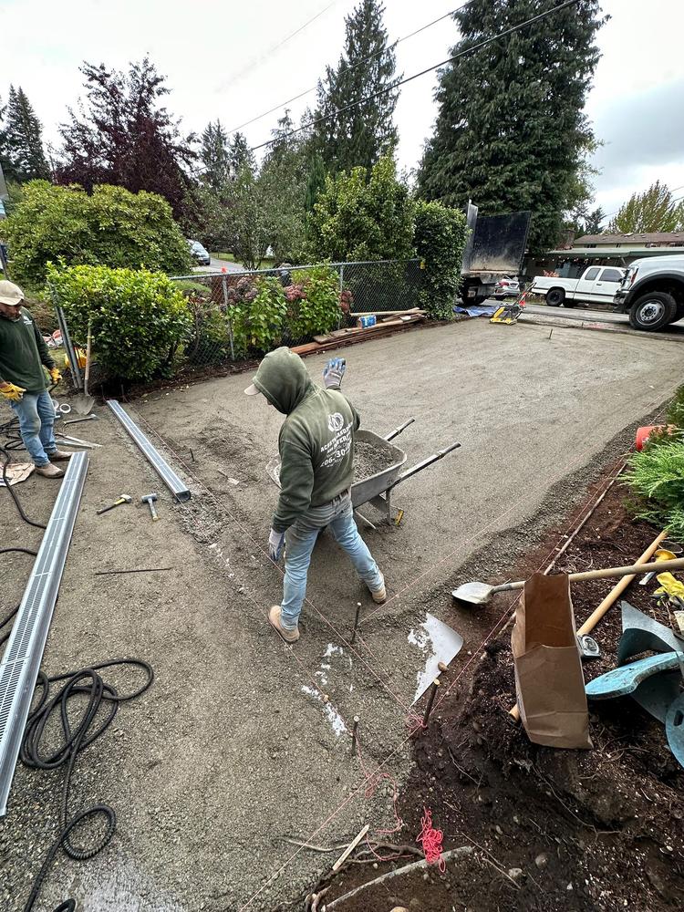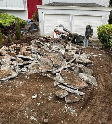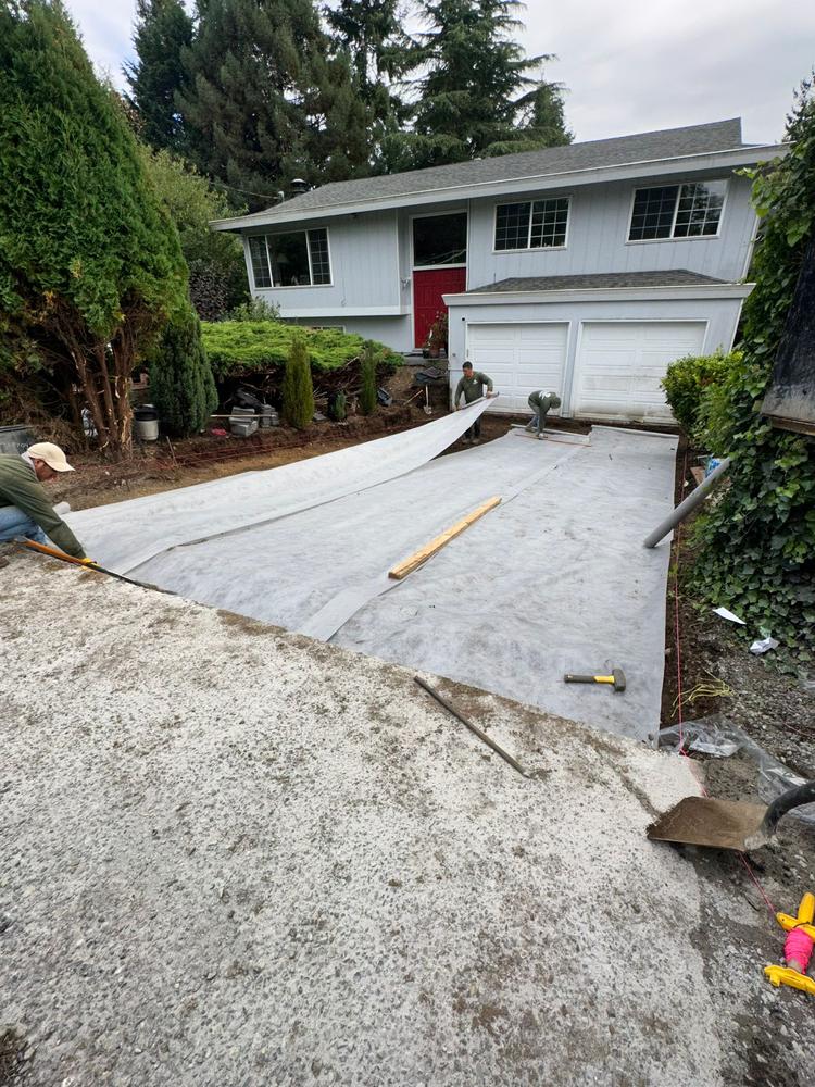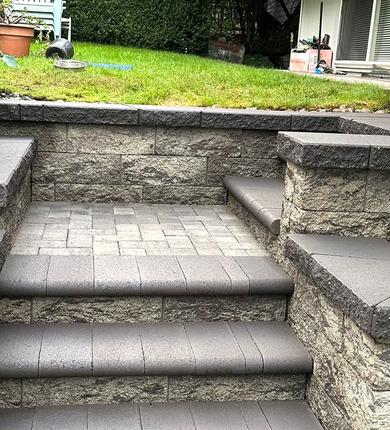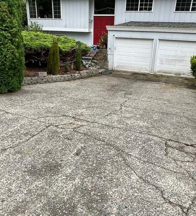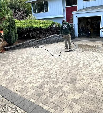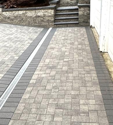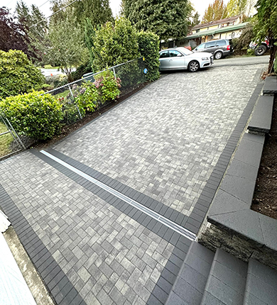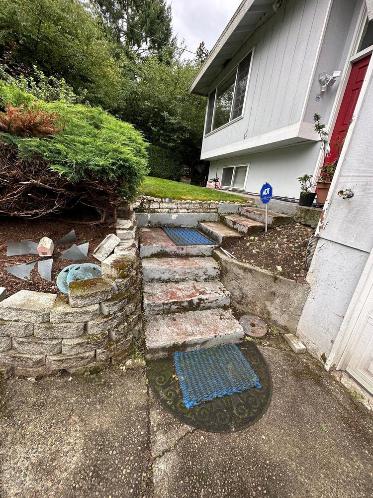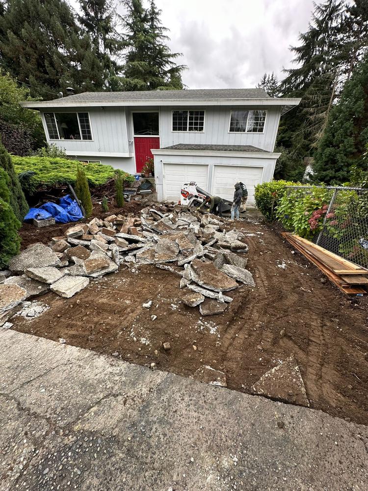 Explore a stunning transformation in Kenmore, WA featuring a beautifully designed paver driveway, removal of old concrete, installation of a new drainage system, construction of a sturdy block wall and natural stone steps.