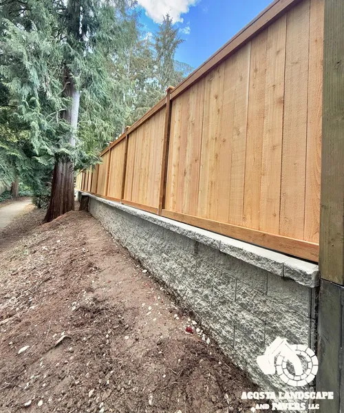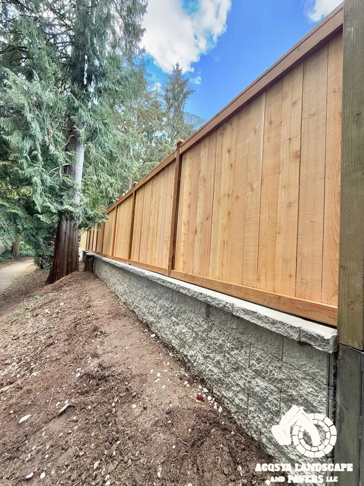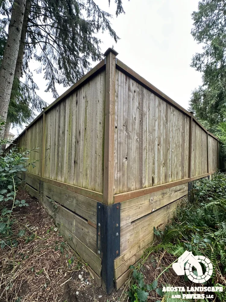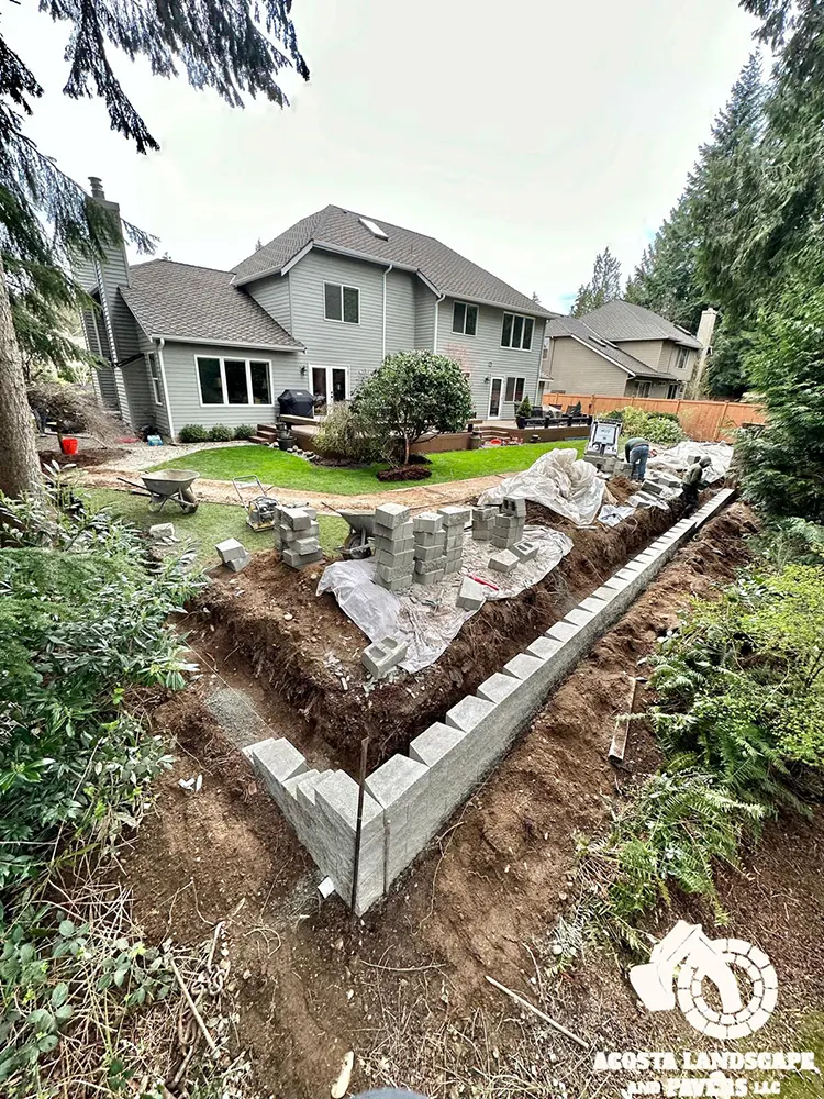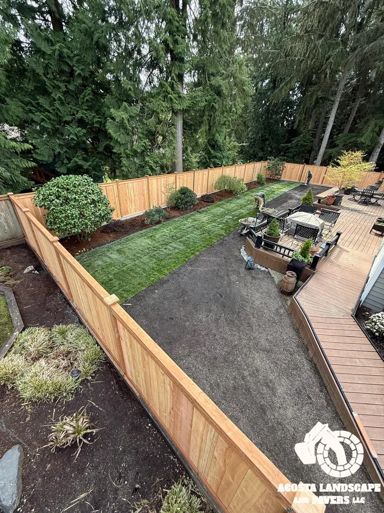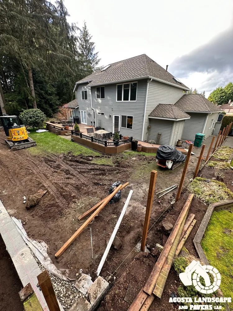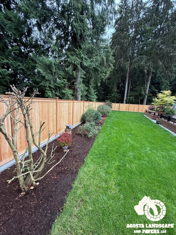 This project in Mill Creek, Washington, involved removing old structures to make way for modern upgrades. We tore out the existing wooden wall and old fence, as well as all the natural grass. In their place, we built a new, durable block retaining wall and a brand-new cedar fence. We then replaced the old lawn with fresh new natural grass, completely revitalizing the yard.