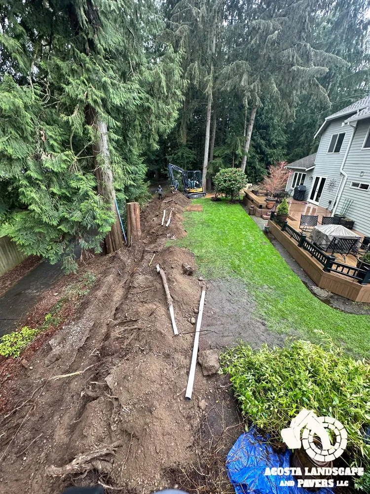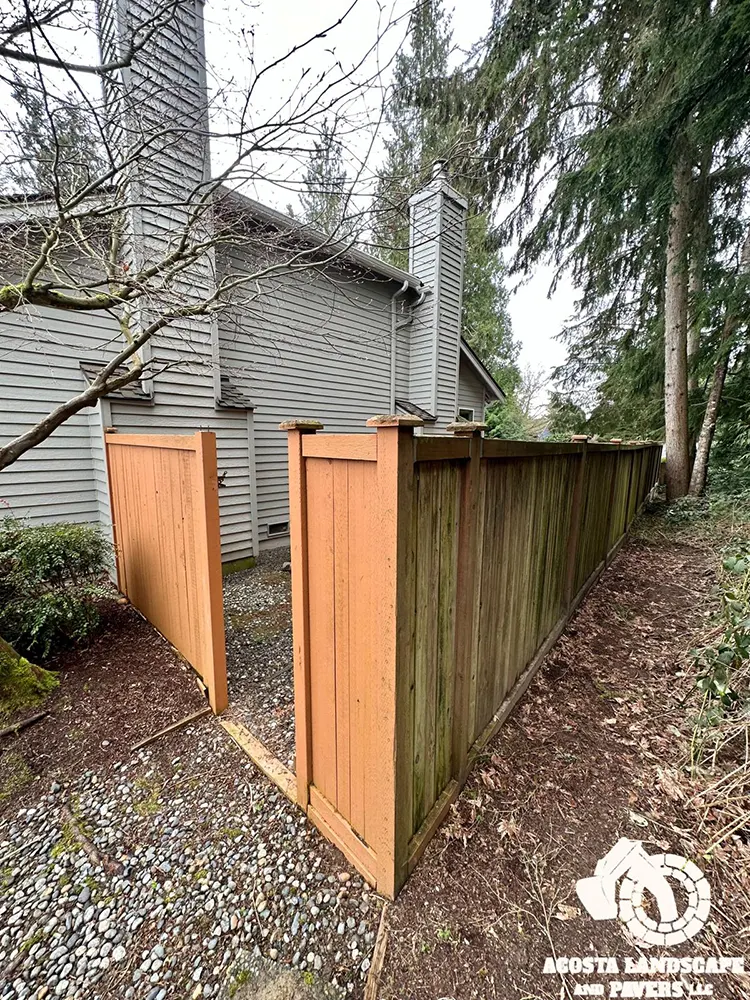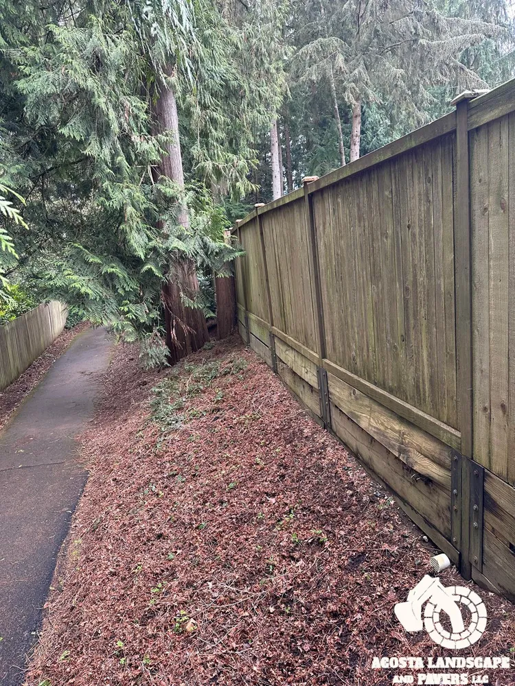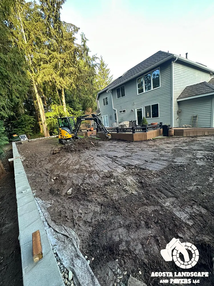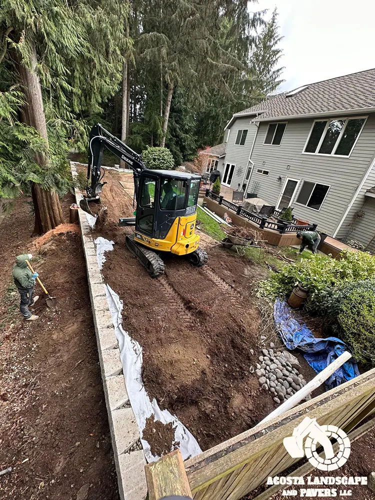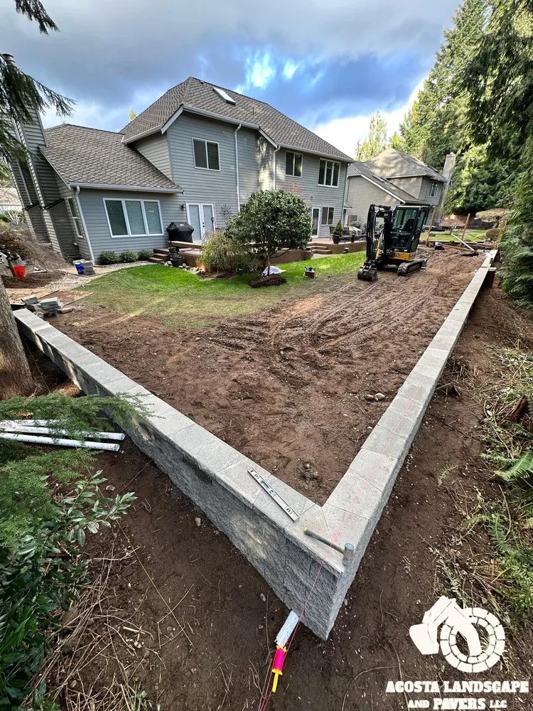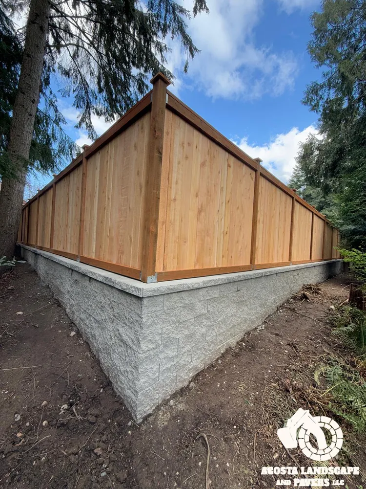 This project in Mill Creek, Washington, involved removing old structures to make way for modern upgrades. We tore out the existing wooden wall and old fence, as well as all the natural grass. In their place, we built a new, durable block retaining wall and a brand-new cedar fence. We then replaced the old lawn with fresh new natural grass, completely revitalizing the yard.