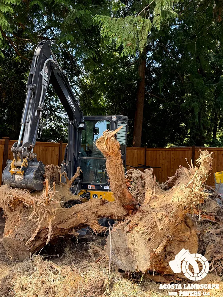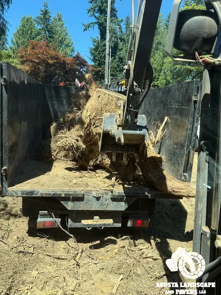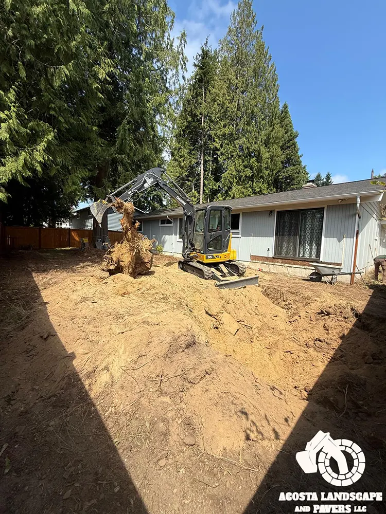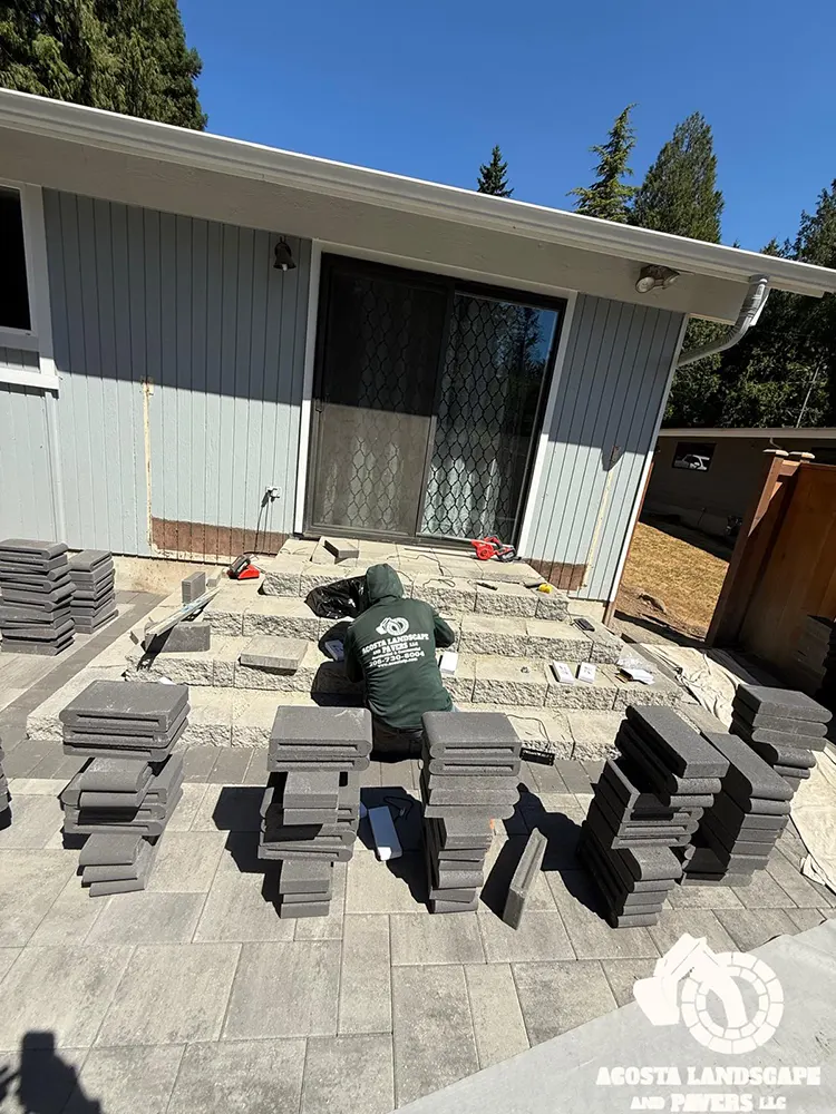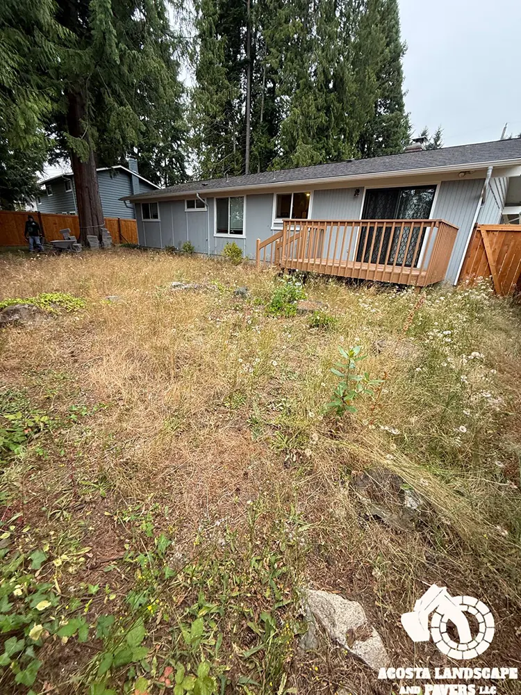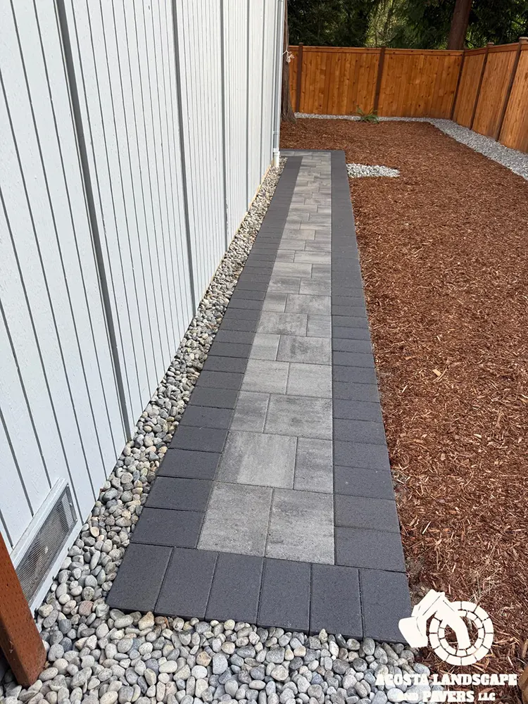 This project transformed a Shoreline backyard into a beautiful and functional space. We began by removing old stumps and roots, then installed a new paver patio, steps, and a connecting walkway. To complete the design, we added fresh mulch throughout the yard and installed lights on the steps for added safety and ambiance.