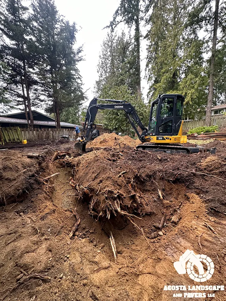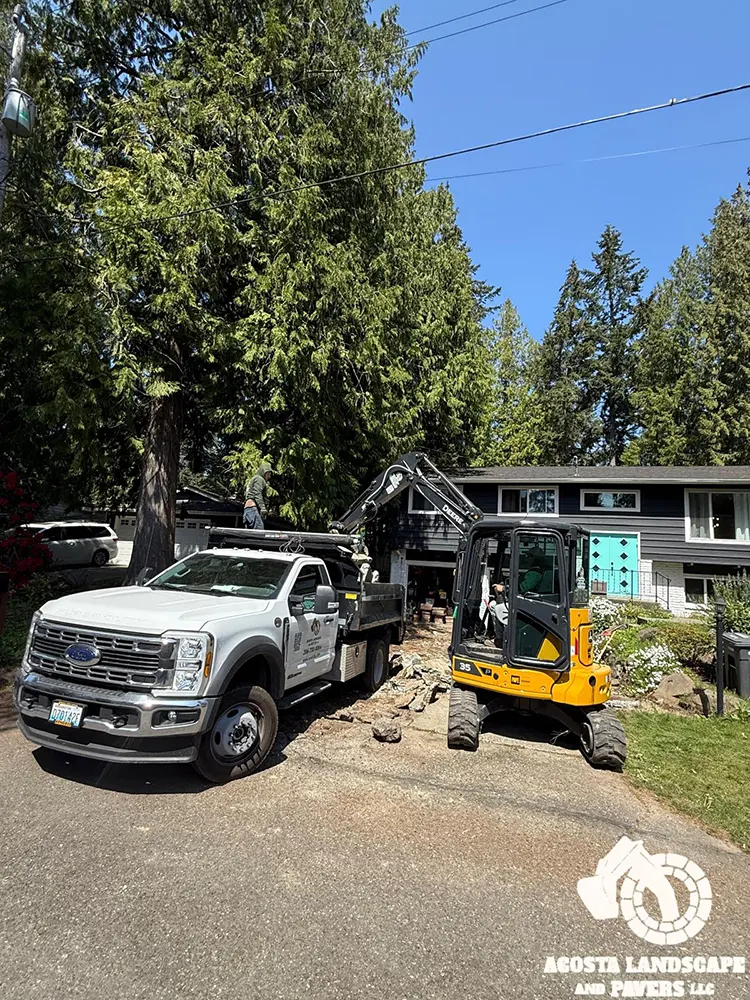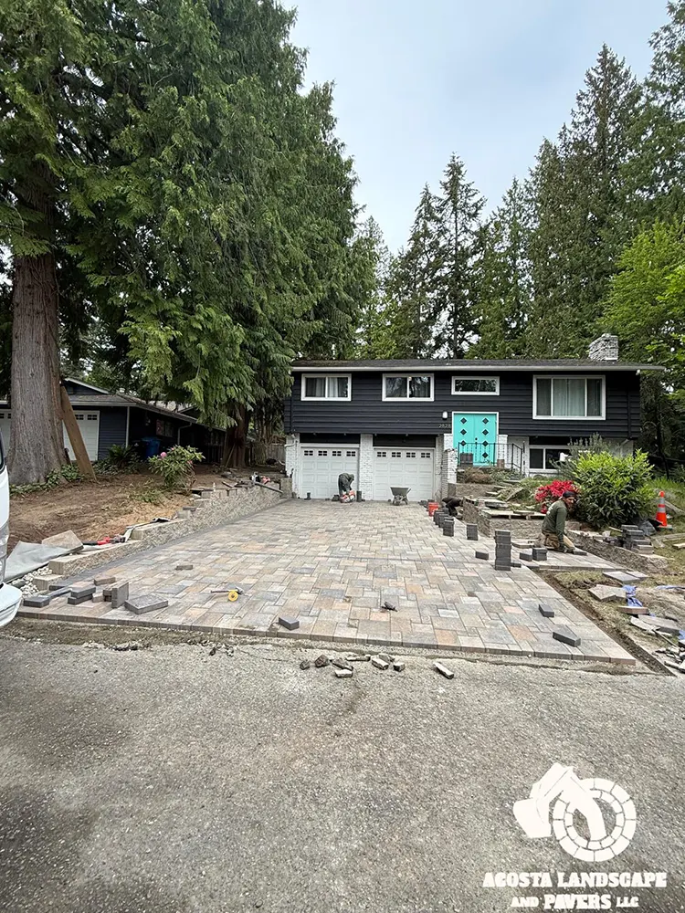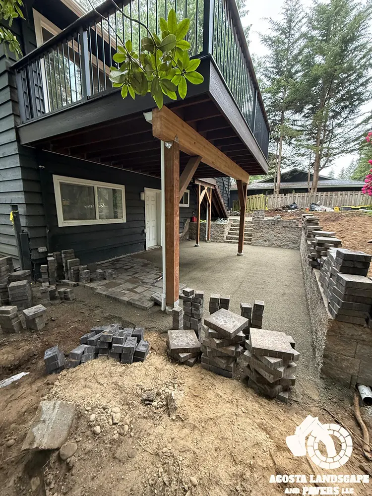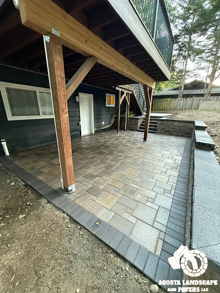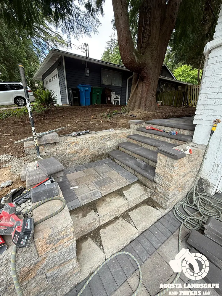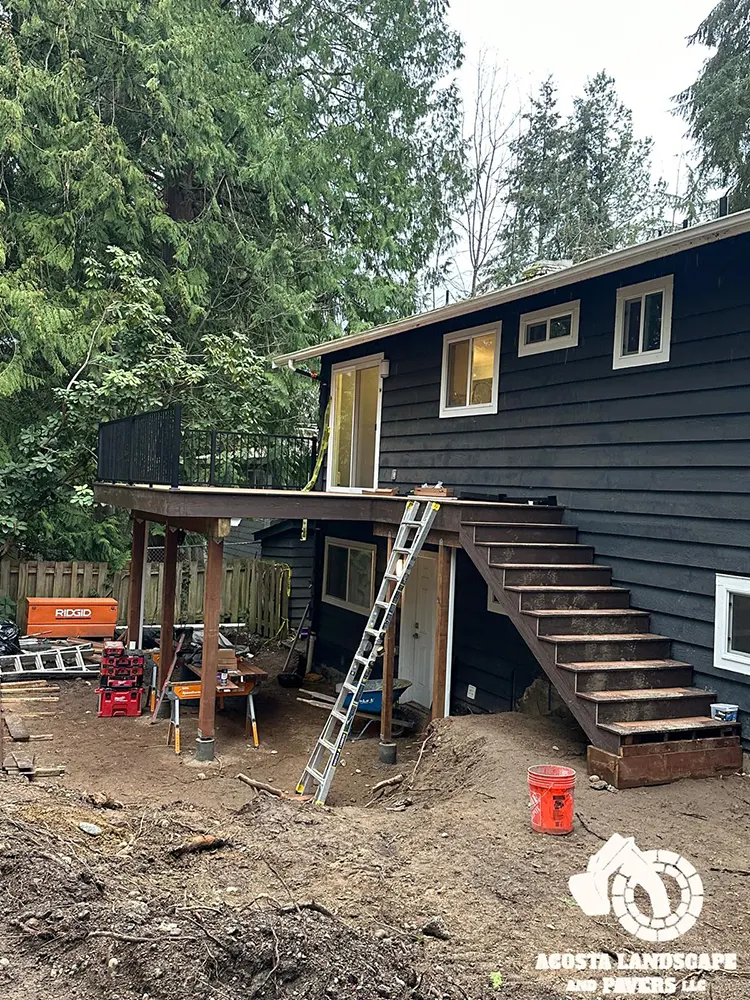This project completely revitalized a Shoreline home. We removed the old concrete driveway and installed new pavers, then built new steps and walkways. The backyard was transformed with a new patio, retaining walls, and steps, plus a brand new deck, creating a cohesive and functional outdoor living space.